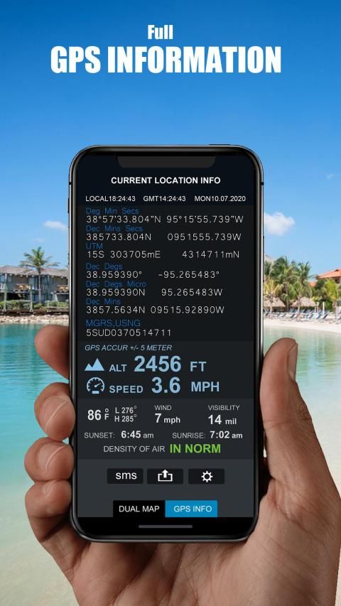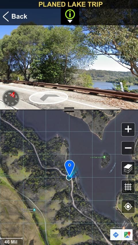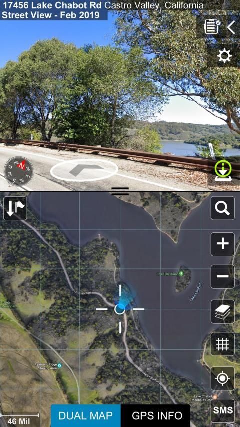 Tampilan ganda dengan Peta dan Street View dengan info GPS lengkap: