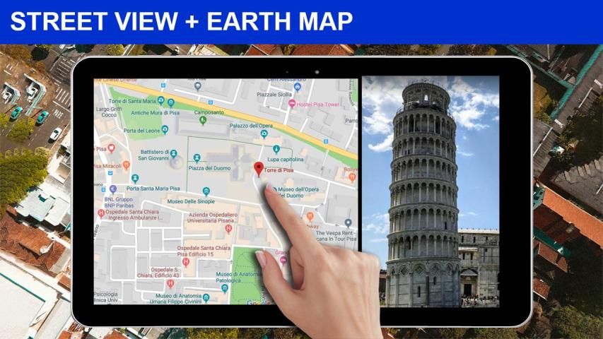 With Street view live map: Satellite earth map you can easily find nearby places around your location and show real time street view live maps with 3D Panorama and 360 degree street view. Famous places street view maps & nearby places route finder will give you a unique planner to search fastest and easiest driving route, live earth maps & satellite street view. Plan your world trip with live earth map, satellite gps maps & street view navigation of world famous places. Search live street view of any location & any place around the world map and see 3D panorama view of famous buildings, places, cities. Also find best routes and driving directions on live world map with GPS route finder. Find live street view of your current my location or any near me place with 360 degree street maps, distance between two locations, and earth maps for walk, bicycle and driving.