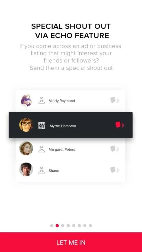 Jika Anda menemukan daftar bisnis atau tempat favorit Anda yang mungkin menarik teman atau pengikut? Kirim mereka rekomendasi khusus berteriak melalui fitur Echo! Ini dapat tiket film, restoran di dekat saya, belanja di dekat saya, bioskop di dekat saya, tempat menyewa dekat saya, tempat-tempat makanan di dekat saya, tempat makan dekat saya, makanan di dekat saya , bisnis lokal di dekat saya, pekerjaan di dekat saya dan bahkan mal dekat saya dan daftar lokal tidak terbatas.