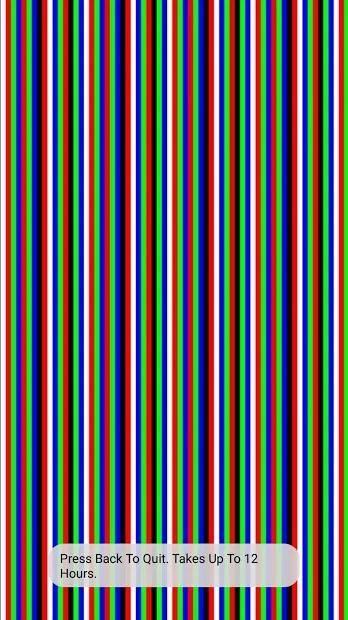 Memperbaiki Stuck Pixels! Piksel macet disebabkan ketika satu piksel di layar membeku pada warna tertentu dan tetap berwarna sampai tidak terselesaikan. Aplikasi ini dengan cepat mem-flash serangkaian pola untuk mencoba dan mencairkan piksel.