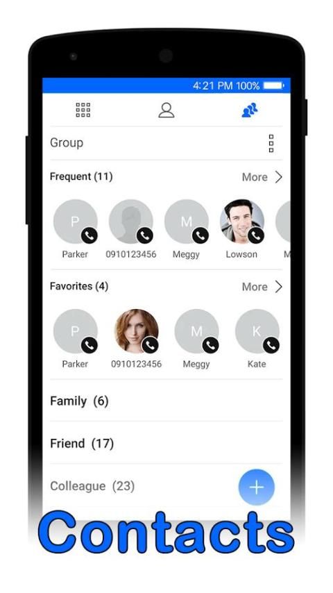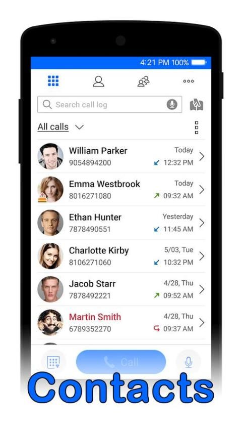 Kontak Bergaya Dialer: Kontak adalah seluruh kontak papan, keluar, dan call log aplikasi yang menawarkan efektif telepon highlights.