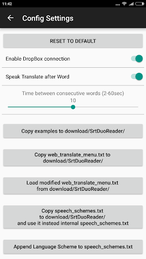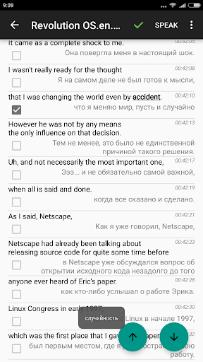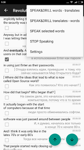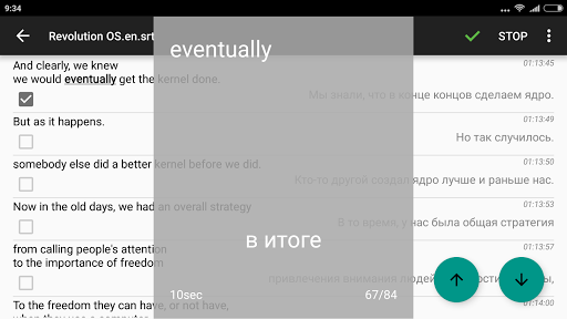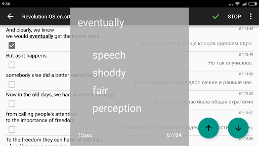 Words memorizing is running at the pace of the movies, without pauses and stops, with the assistance text-to-speech engine.