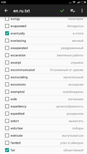(Preinstalled examples with dictionary of difficult words for en-ru)