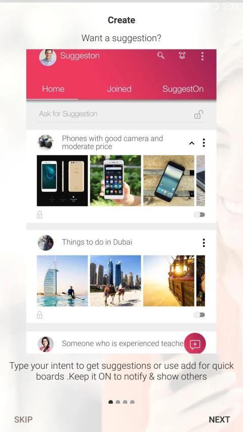 • Suggestions of all form - text,image,place, weblinks,time, contacts from your friends organised at one place