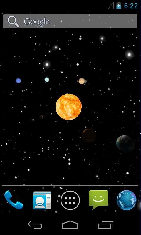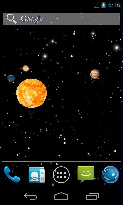 Ruang, 3D hidup wallpaper di desktop Anda. Tata surya dengan planet-planet terhadap bintang. Skala, jarak dan kecepatan percobaan berkelanjutan.