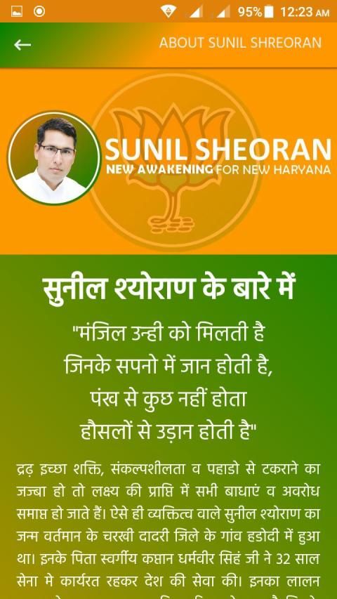 This app is all about BJP and Sunil Sheoran. About up coming events, photos etc.