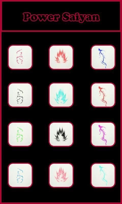 Berikut adalah daftar banyak dari kekuatan / filter yang telah digunakan dalam Kamera Super Black Saiyan App.