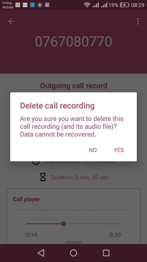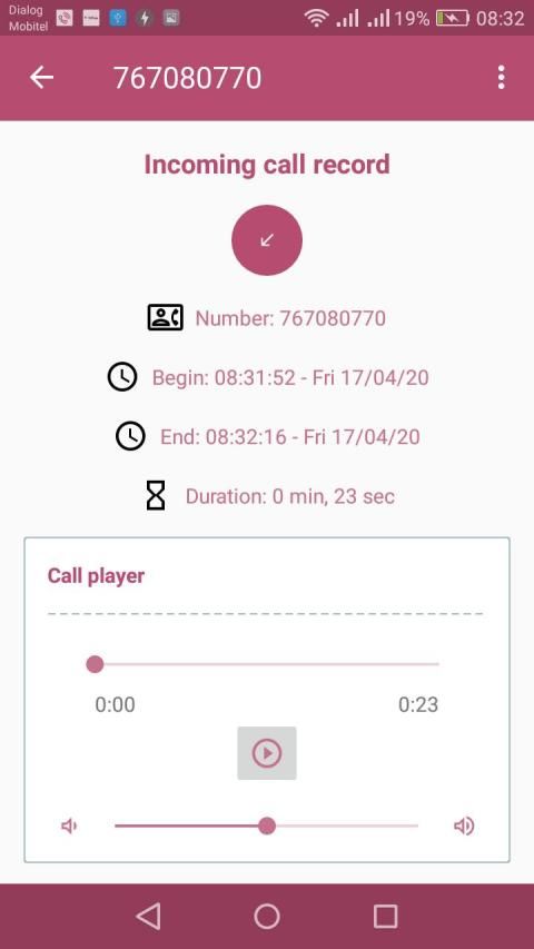 • Audio player internal untuk mendengarkan rekaman panggilan dengan mudah