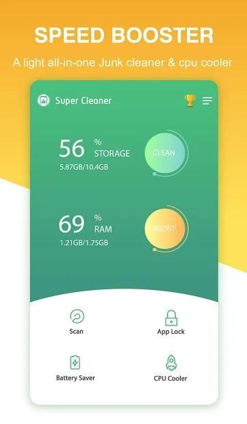 Super Cleaner is a light, fast & smart android phone cleaner and booster app that clean phone memory and storage space with simply 1 tap.