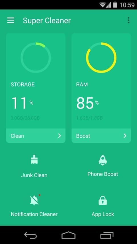 Super Cleaner cepat menganalisa ruang penyimpanan pada ponsel Anda dan membersihkan semua data yang tidak perlu. Menguasai situasi penyimpanan Anda dengan mengoptimalkan perangkat Android Anda dan meningkatkan kecepatan.