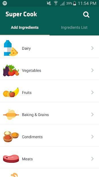 Super Cook allows you to search for common recipes based on Ingredients that you already have at home.