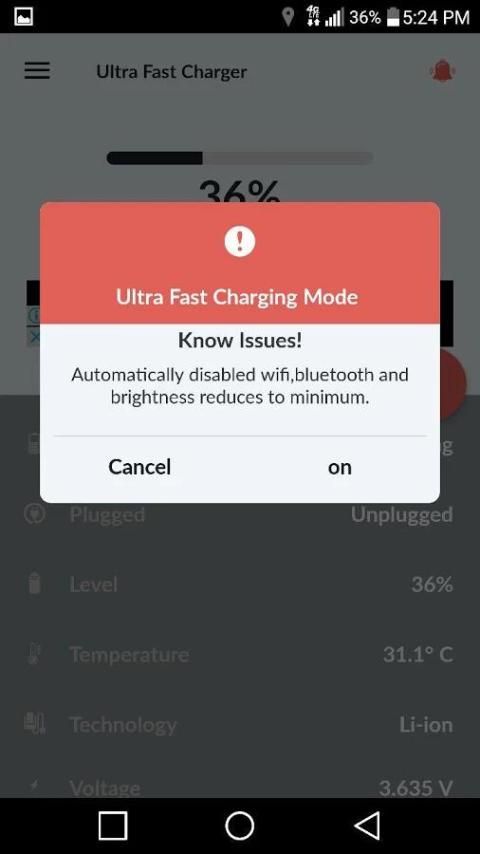 Ketika perangkat mencolokkan Anda Super Cepat Charger otomatis terbuka. Saat mengaktifkan baterai cepat modus pengisian membunuh semua latar belakang menjalankan aplikasi, layanan dan juga menonaktifkan Wi-Fi, gigi biru, 3G, lokasi mengurangi kecerahan hingga minimum yang membantu untuk meningkatkan kecepatan pengisian baterai Anda. Bila aplikasi dekat Anda yang super mode charging baterai cepat otomatis dinonaktifkan.