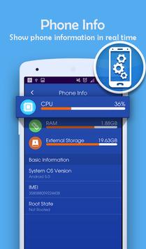 Also by using our app you are able to monitor cpu, storage and ram information at the real time, and clean the memory, boost your phone. This app is designed for 4GB RAM devices or less but it is also very effective for other devices.