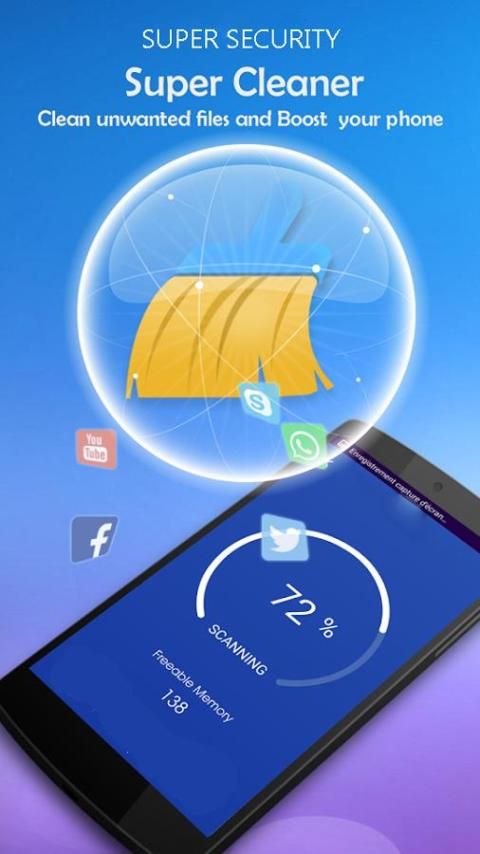 Junk Bersih - Telepon Anda menyimpan file sampah secara otomatis dari waktu ke waktu. Super keamanan Antivirus, Cleaner, Booster 2018 mendeteksi masalah ini dan membebaskan penyimpanan bila diperlukan. Salah satu tap untuk membersihkan cache dan sampah file sekaligus. Cara yang paling cerdas untuk membersihkan dan mengoptimalkan telepon.