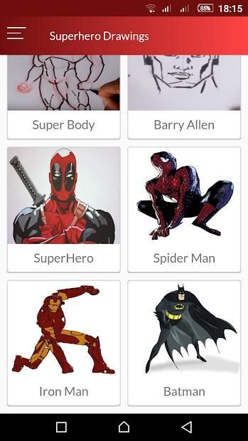 If you love superhero drawing and you are looking for Superhero drawings ideas to learn to draw superhero, you just got the right app. This app has many superhero drawing lessons step by step that help in learning how to draw superhero step by step.