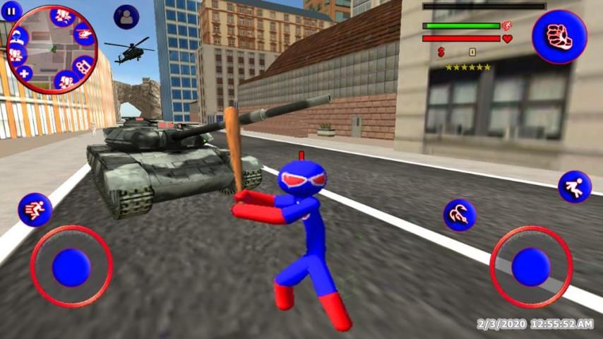Stickman SuperHero have a lot of super power you can use them for defending your self counter the gangsters, like the rope to climb the building and escape from police and criminals that wants your head down also there is the super kick that’s super powerful.