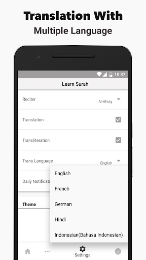 2. Easy translation in English and other languages of each chapter to understand Quran teachings.