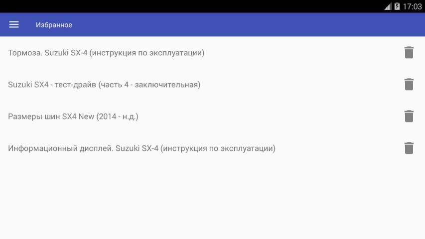 Aplikasi FAQ Suzuki SX-4 berisi pertanyaan yang paling sering ditanyakan yang timbul dari pemilik selama pengoperasian kendaraan ini dan jawabannya.