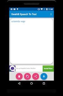 Ingin Swahili teks tanpa mengetik kemudian download aplikasi ini dan mendapatkan pekerjaan yang dilakukan. Hanya berbicara dalam bahasa Swahili dan mendapatkan semua teks Anda.