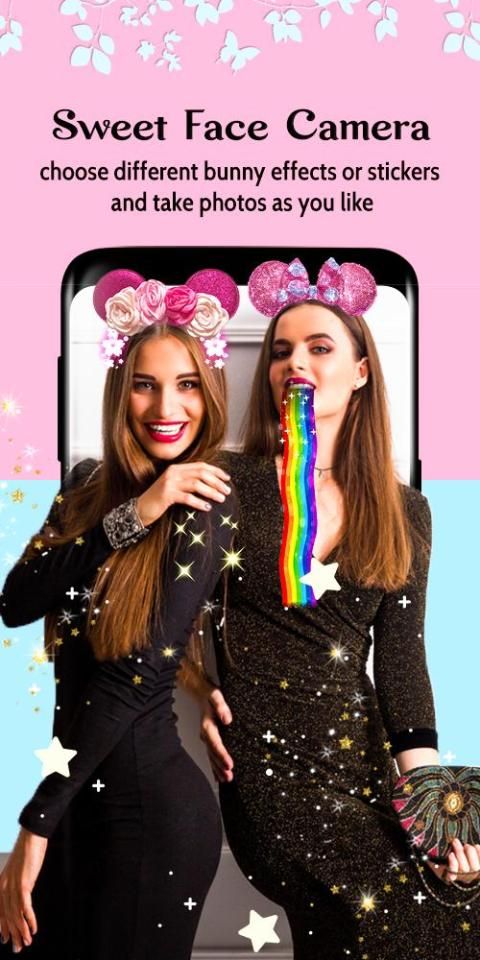 Try the all new Sweet face camera with plenty of excellent live selfie filters , Sweet face camera app provides you of a huge collection of catchy stickers such as a large variety of cute animal stickers like: Dog face stickers , Cat face stickers , Bunny & Rabbit stickers , also with Sweet face camera 2019 you can try a lot of lovely motion stickers and stylish flowers crown stickers, fashionable glasses and many of cool head accessories ,obviously this interesting photo editor looks literally like a stickers home store!