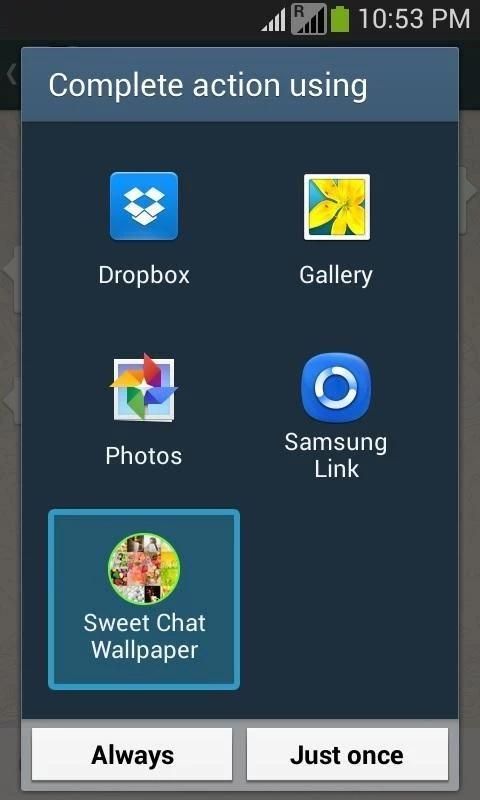 Hiasi Anda lantai chatting dengan Sweet Obrolan Wallpaper pada perangkat Anda dan menikmati mengobrol dengan latar belakang yang menyenangkan. Untuk mengaplikasikan wallpaper Anda hanya membuka aplikasi chatting dan pergi ke wallpaper-> Pilih Android Syatem-> Pilih Manis Obrolan Wallpaper -> Pilih pilihan Anda wallpaper dan Apply dan menikmati.