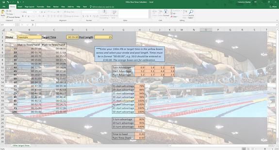 Menggunakan rumus matematika yang memperhitungkan mulai keuntungan, mengubah keuntungan, mendorong keuntungan dan waktu untuk kepala / kaki untuk menghitung kali target untuk semua jarak antara 15m dan 100m, didasarkan dari waktu terbaik perenang.