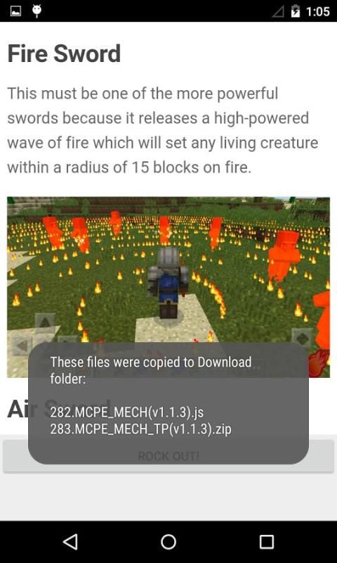 Note: "Sword Mod Installer" just adds mods to download folder in your android device. You need to have Minecraft: Pocket Edition and BlockLauncher for the sword mods to work.