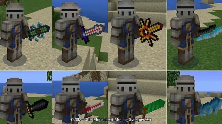 Katalog ini mods untuk Minecraft tidak akan meninggalkan siapa pun acuh tak acuh. Secara total, ada lebih dari 20 addons yang akan menambah pedang untuk mcpe kepada Anda dalam permainan. Setiap mod menambahkan dari 10 hingga 100 pedang yang berbeda dengan kemampuan mereka yang unik. Misalnya, pedang unsur mod, di mana masing-masing pedang bergabung dengan beberapa unsur: pedang api mampu menciptakan api sekitar, pedang lain dapat menyebabkan tornado. Kita bisa mendiskusikan semua kemungkinan pedang ini untuk waktu yang lama, tapi sebaiknya untuk menginstal mods pedang dan mencobanya di Minecraft PE.