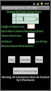 This free app will calculate the rate setting in mm per hour or mm per day for the Graseby Syringe Driver based upon fluid length and infusion time.