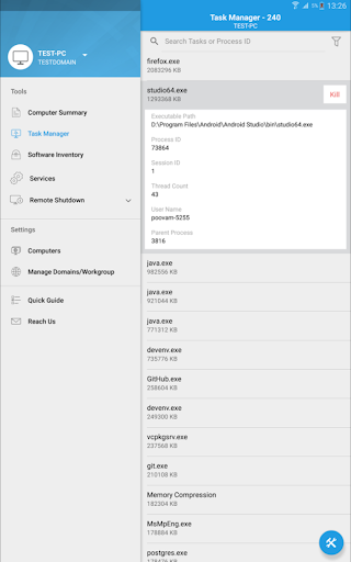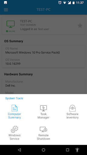 • Tarik informasi tentang komputer yang dikelola seperti nama sistem, tanggal, nomor seri, nama pengguna, produsen, sistem operasi, RAM, model, dan banyak lagi, dari Anda Perangkat seluler.