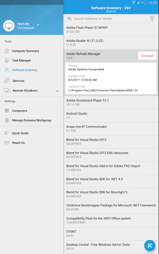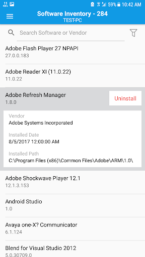 • Kelola perangkat lunak di jaringan Anda dengan detail mendalam seperti nama perangkat lunak, versi, produsen dan tanggal pemasangan. Anda juga dapat menghapus perangkat lunak dari jarak jauh.