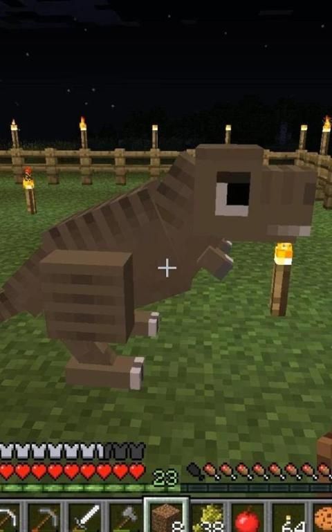 Serangan lainnya t-rex, domba, desa, sapi, pemain dan kerangka