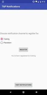 The first T&P Notifications application. Register on either the Training or the Placement channel to receive push notifications.