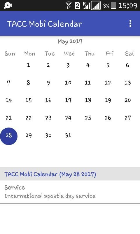 Ini akan memiliki fitur untuk menambahkan acara sendiri di kalender atas dan di atas mereka yang diprogram oleh gereja di kalender