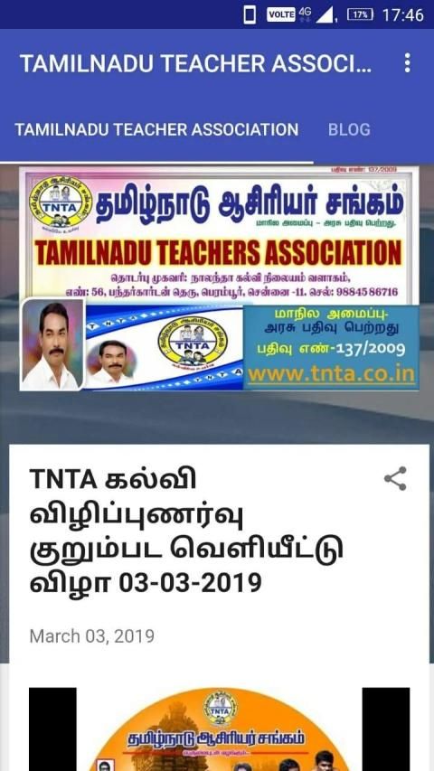 TAMILNADU TEACHER ASSOCIATION IS REGISTERED ASSOCIATION TO SERVE FOR THE WELFARE OF TEACHERS,STUDENTS AND SOCIETY. REGISTERATION NUMBER 137/2009. FOUNDER NAME: PK ILAMARAN ,CONTACT NUMBER 9884586716 E MAIL : PK.ILAMARAN@GMAIL.COM