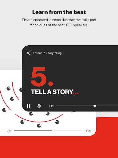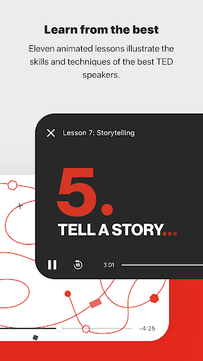 Kuasai teknik -teknik utama yang digunakan oleh pembicara TED untuk memberikan pembicaraan hebat.Setiap teknik diajarkan menggunakan animasi dan klip yang jelas dari pembicaraan TED yang terkenal.