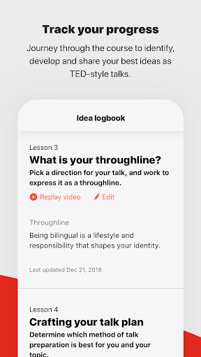 Akses penuh ke kursus tersedia melalui pembelian dalam aplikasi, dan semua hasil mendukung pekerjaan nirlaba TED.Pembelian dalam aplikasi adalah pembayaran satu kali untuk akses tak terbatas ke Ted Masterclass.