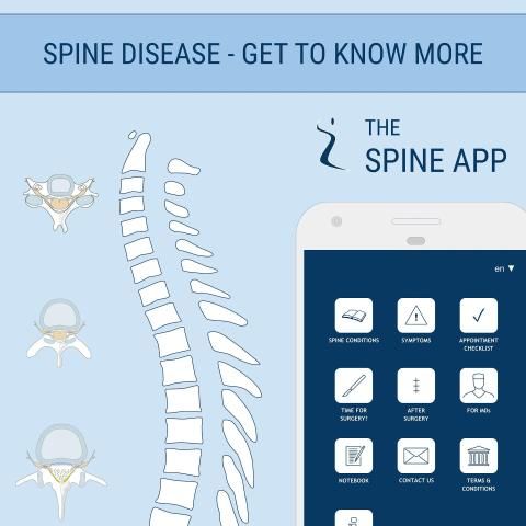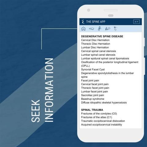 Dengan THE SPINE APP Anda akan memiliki panduan komprehensif untuk penyakit tulang belakang yang paling umum.