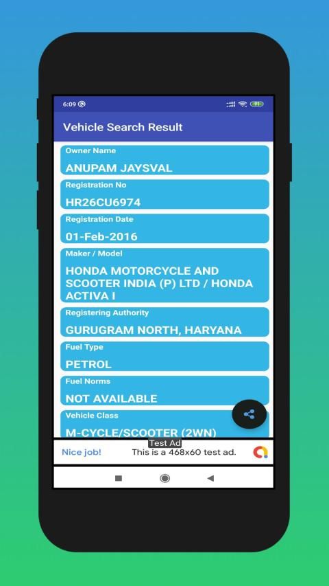 Catatan: Karena situs web Parivahan tidak menunjukkan alamat pemilik karena alasan keamanan yang jelas, aplikasi ini tidak dapat menampilkan Informasi Kendaraan RTO dengan alamat karena hanya menyajikan data dari Situs Parivahan dengan cara yang ramah pengguna.