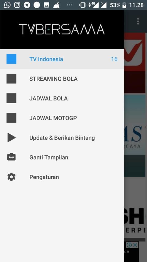 TV Bersama merupakan sebuah aplikasi tempat nonton tv online indonesia live streaming terlengkap tercepat tanpa buffering dengan jadwal bola dan streaming bola online. Ditambah dengan jadwal dan streaming moto GP.