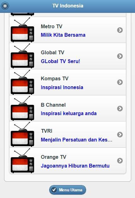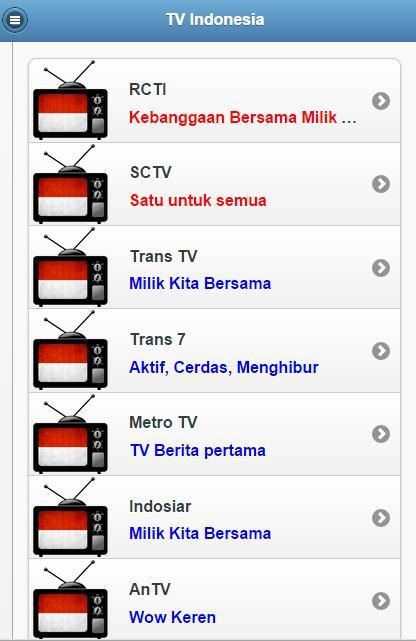Aplikasi TV Indonesia Android adalah sarana bagi anda yang sibuk dan tidak sempat untuk menonton tv dirumah. Sangat mudah dalam pengoperasian nya. Nikmati banyak saluran hanya dalam satu genggaman.