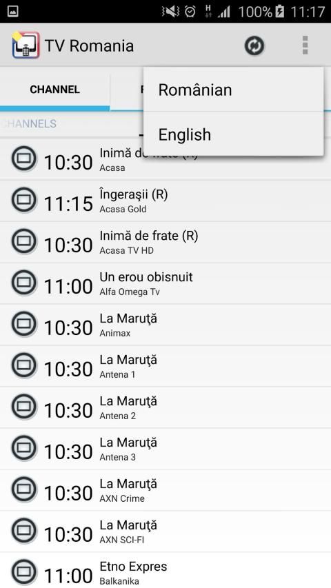 Romanian tv channels guide. Tv Romania include lots of Romanian tv channel daily guide. You can see daily guide of each channel, now and next program list of all channels. You can define favorite list by selecting channels. Also you can set up reminder for programs. Reminder work as notification before 5 minutes to program start. This application is not a tv broadcasting application, it only contains Romanian tv channels daily guide. So you can not watch tv by this application.