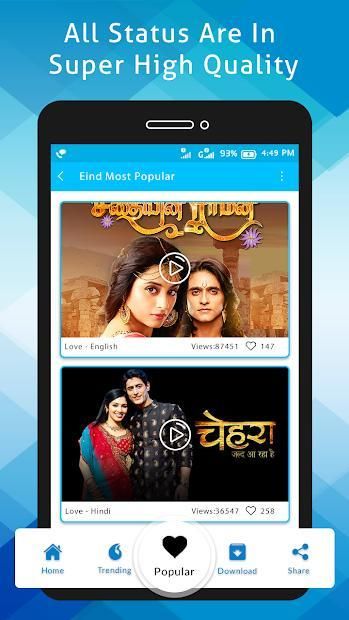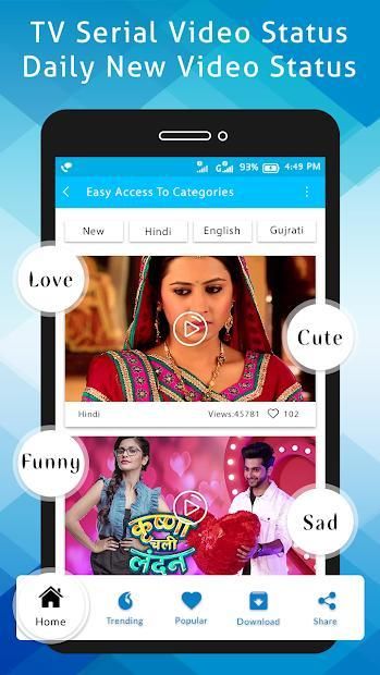 All different types of video status for whatsapp and facebook are available. Also, short 30 second short videos are available. TV Serial Status Video app have 30 second video song status, 30 second whatsapp status, 30 sec status video, 30 sec video song and many more. TV Serial Status Video app also contains tv serial status and tv serial dp of all famous tv characters.