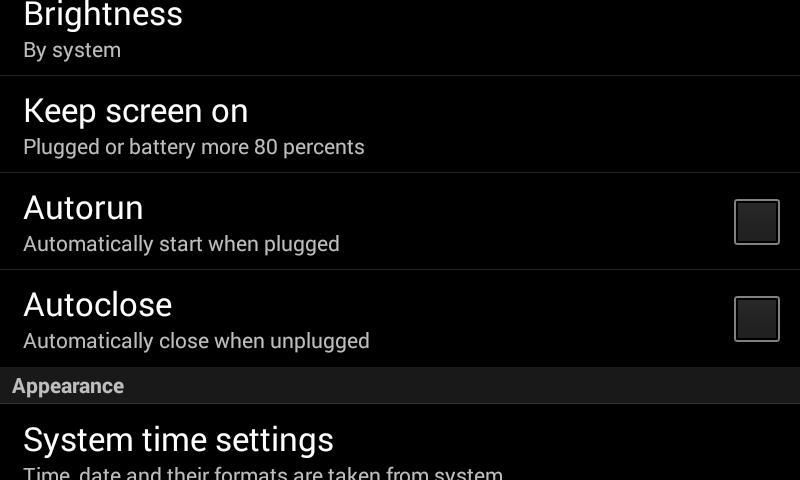 - automatic start and close application on plugged/unplugged charger ( disabled in settings by default )