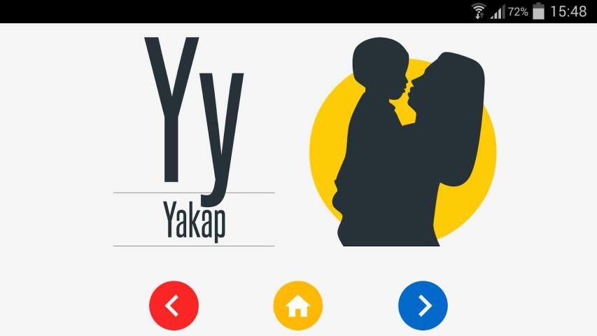 - Setiap huruf memiliki pencocokan gambar berwarna-warni