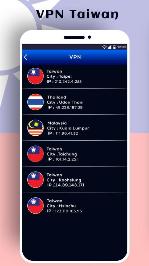 yang menghubungkan Anda ke server tercepat dengan klik mudah. Aplikasi tidak hanya dengan server Taiwan tetapi juga menyediakan lebih banyak negara untuk terhubung dengan VPN dengan mudah. Aplikasi dengan Anda dapat menghubungkan Anda memiliki akses gratis ke semua halaman dan situs web yang diblokir yang dibatasi di wilayah Anda. itu memberi Anda keamanan penuh mengenai alamat IP Anda.