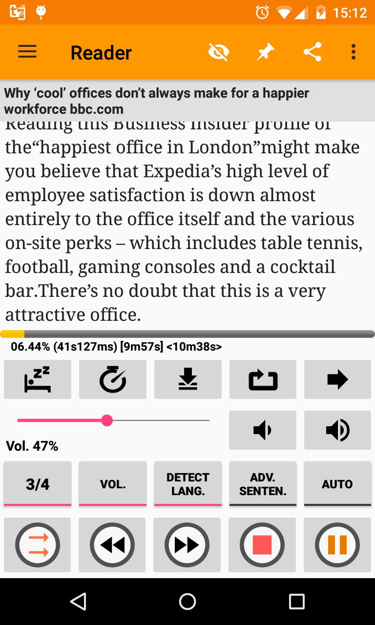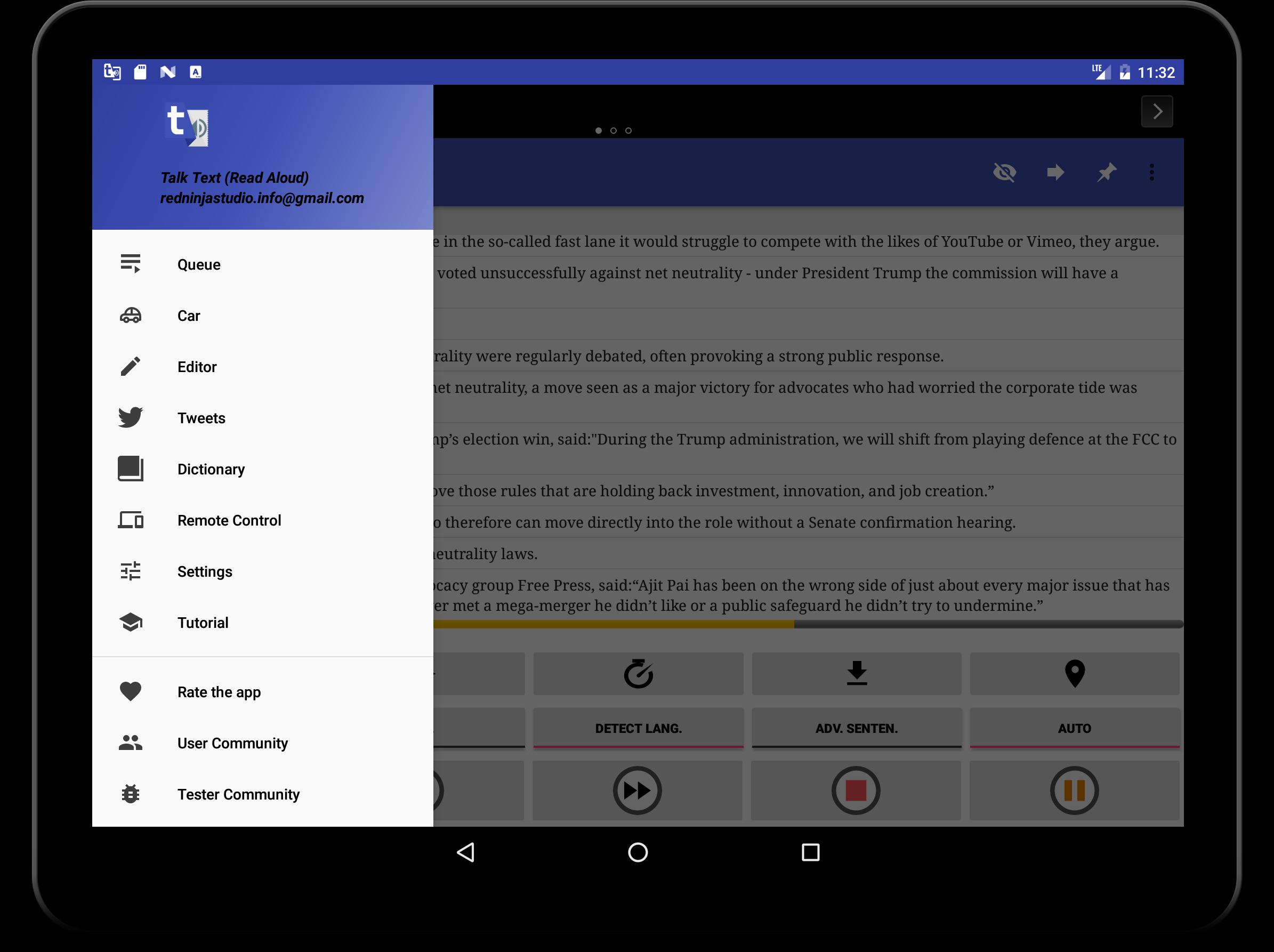 -Read text from other apps (RSS Readers, Email Readers, Browsers, ...).