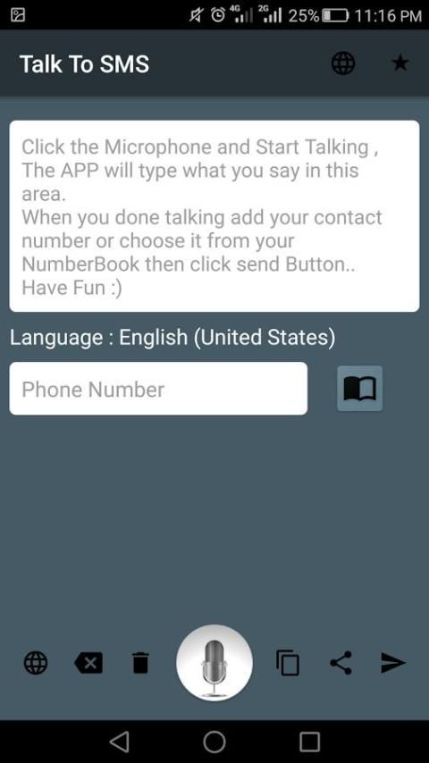 Berbicara dengan SMS menawarkan untuk membuat SMS dengan suara, tanpa mengetik pesan.