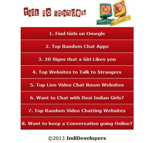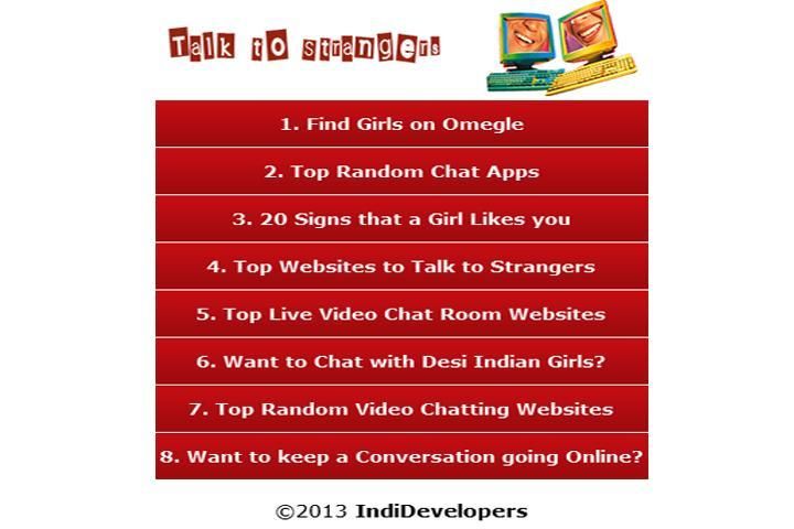 Bicara dengan orang asing adalah aplikasi yang sempurna untuk pengguna yang mencari acak chatting dengan orang asing secara online, Pada dasarnya kami menyediakan bicara asli untuk situs asing secara online untuk membantu pengguna untuk dengan mudah menemukan video chat online dengan orang asing tanpa efek berbahaya. Jika Anda ingin bebas video chat Anda dapat mengunjungi aplikasi kami untuk menemukan situs terbaik untuk video chat.