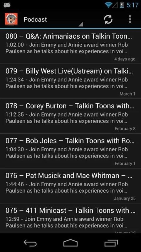 Bergabunglah Emmy dan pemenang Annie Penghargaan Rob Paulsen untuk Talkin 'Toons, sebuah suara akting mingguan dan suara melalui podcast. Dengarkan saat Rob wawancara pemain dari banyak acara yang Anda kenal dan cinta dan membawa Anda di belakang layar ke dunia suara melalui akting.